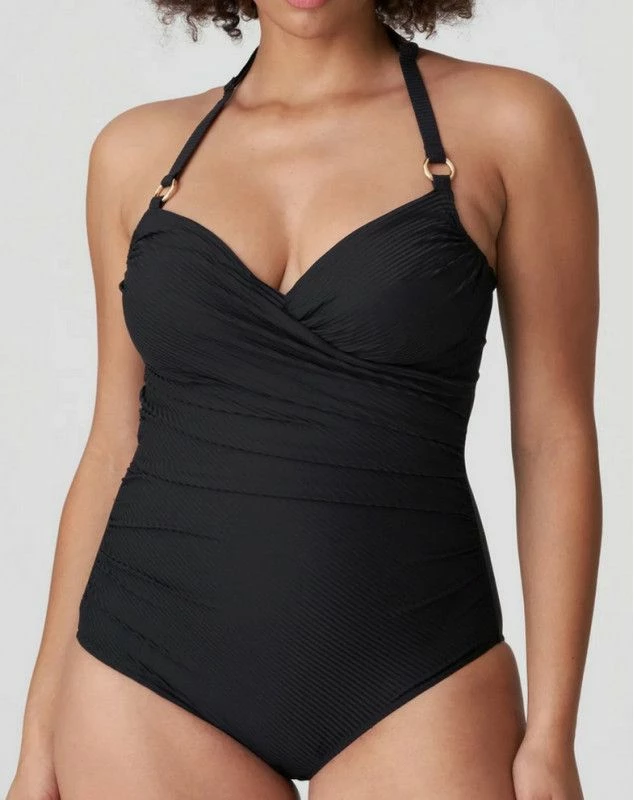 Élégant maillot 1 pièce sculptant en maille avec une coupe rétro flatteuse. Des maillots de bain élégants en noir intemporel : que demander de plus ?