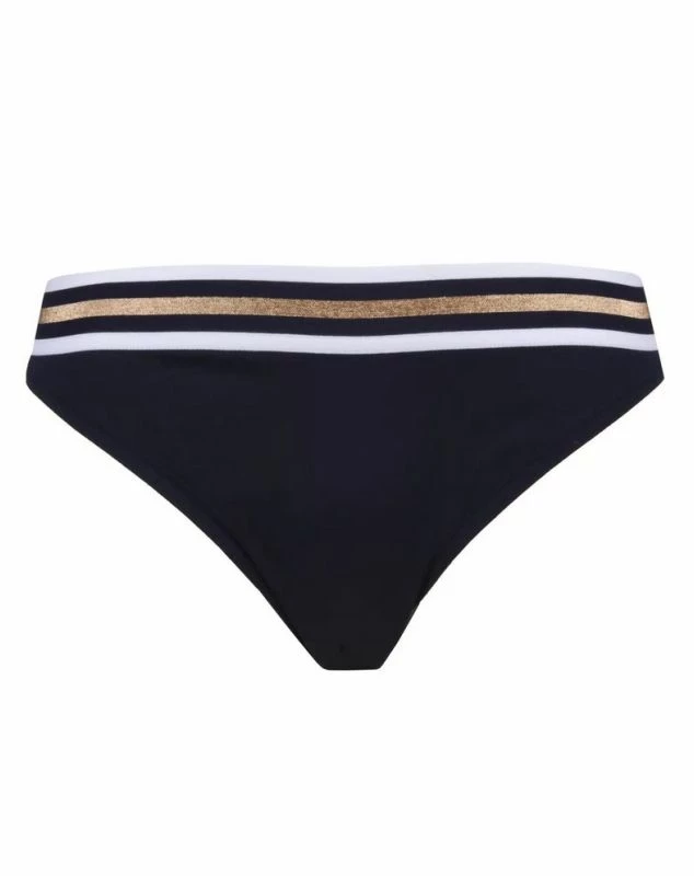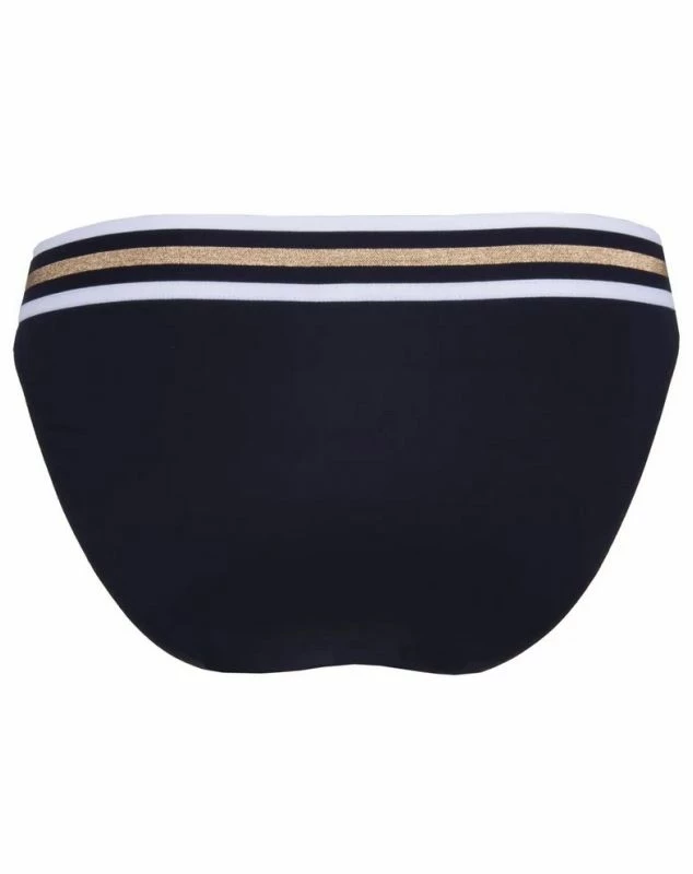 Le slip de bain Lise Charmel de la collection Energie Nautique offre un maximum de confort au porter grâce à sa maille unie tonique certifiée Lycra Sport ainsi que son élastique graphique aux touches cuivrées qui souligne la taille.
