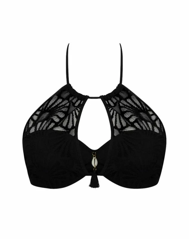 Le soutien-gorge de bain bandeau à coques de la collection La Muse Dentelle propose des bretelles amovibles et réglables ainsi qu’un lacet multiposition en tour de cou. La dentelle non doublée au décolleté dévoile la peau par transparence.