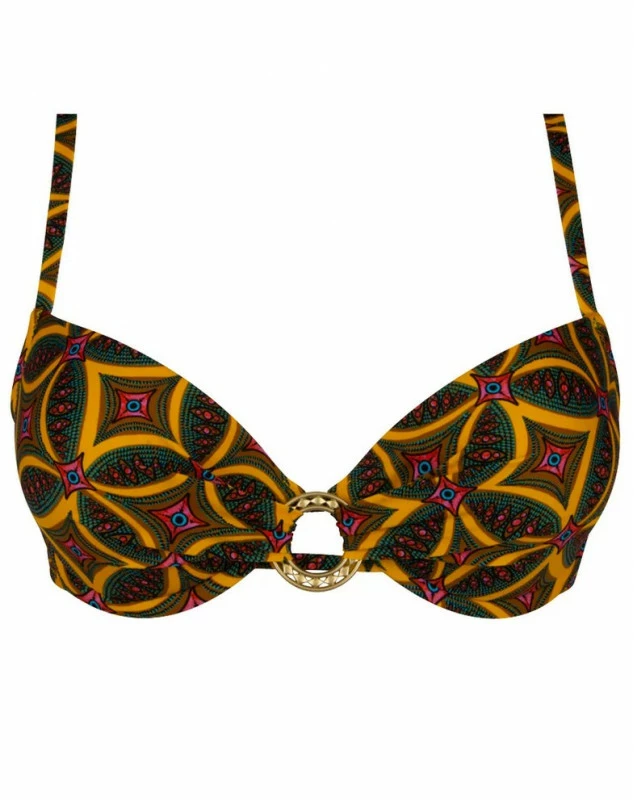 Soutien-gorge de bain Ă coques de la collection La Muse Africa. Ce soutien-gorge propose un dĂ©colletĂ© plongeant et Ă©lĂ©gant ainsi qu’une forme de poitrine arrondie. Les coques sèchent rapidement et les bretelles sont multipositions.