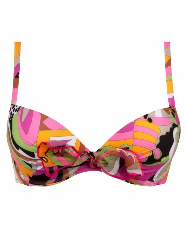 Soutien-gorge de bain coque de la collection La Muse Du Vent. Ce soutien-gorge propose un dĂ©colletĂ© plongeant et Ă©lĂ©gant ainsi qu’une forme de poitrine arrondie. Les coques sèchent rapidement et les bretelles sont multipositions. Ce maillot de bain propose un nouage sur le devant pour rĂ©gler la profondeur du dĂ©colletĂ©.