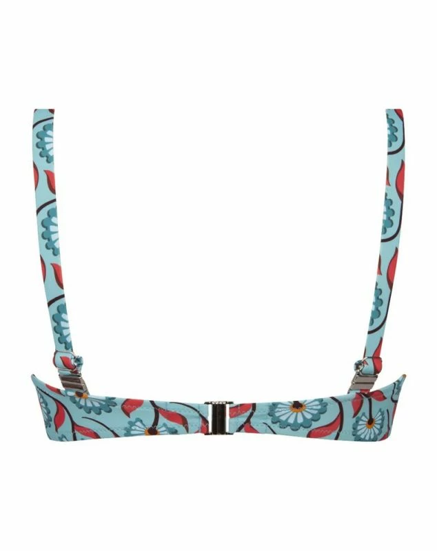 Soutien-gorge de bain triangle à armature de la collection La Muse Bohème Antigel. Ce soutien-gorge offre un décolleté plongeant et des bretelles à porter droites ou croisées avec des crochets à clips.
