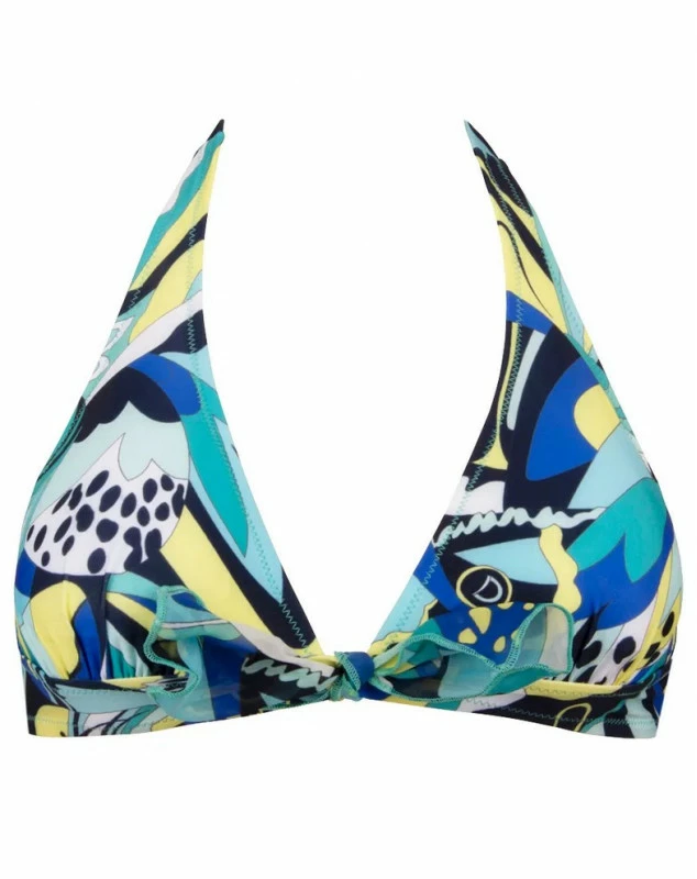 Le soutien-gorge triangle sans armature à mousses amovibles de la collection La Muse Du Vent se noue dans le dos. Le modèle drapé, enrichi par un nœud en voile effet foulard.
