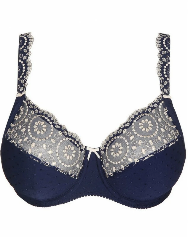 Le soutien-gorge emboîtant Prima Donna de la collection Osino est orné d’une délicate broderie anglaise sur le haut des bonnets, qui se prolonge élégamment sur les bretelles pour mettre en valeur le décolleté. Le dessous des bonnets est opaque et subtilement brillant.